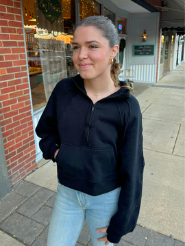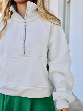Our AirEssentials half-zip sweatshirt is made with our ultra-drapey spacer fabric that's light as air and silky-soft. Made with Lurex®, this pullover features a metallic shimmer that livens up your all-day wear with an effortless, sophisticated sheen. With optimal breathability and 4-way stretch, it's the ultimate throw-on-and-go style.