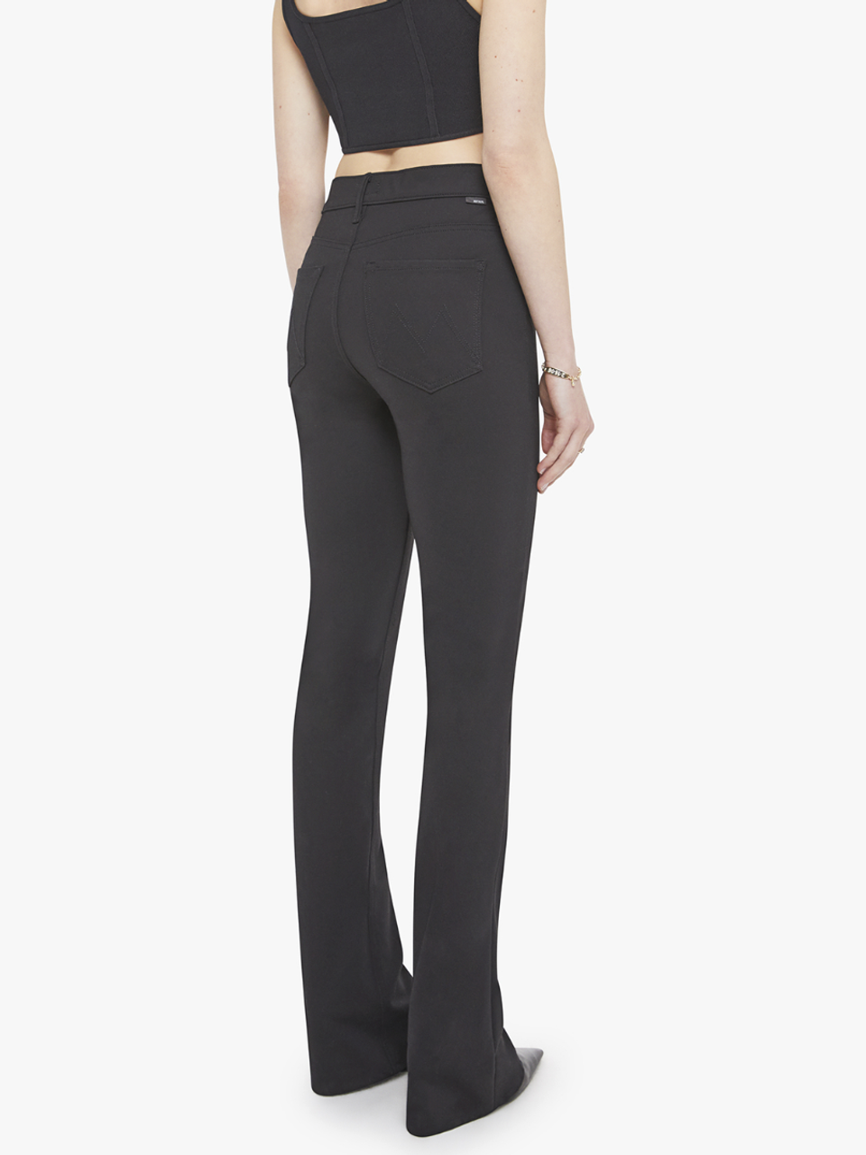 A classic high-rise flared trouser with a zip fly and a 34-inch inseam with a clean hem. Made from stretch fabric, the pants are designed in black with tonal hardware.