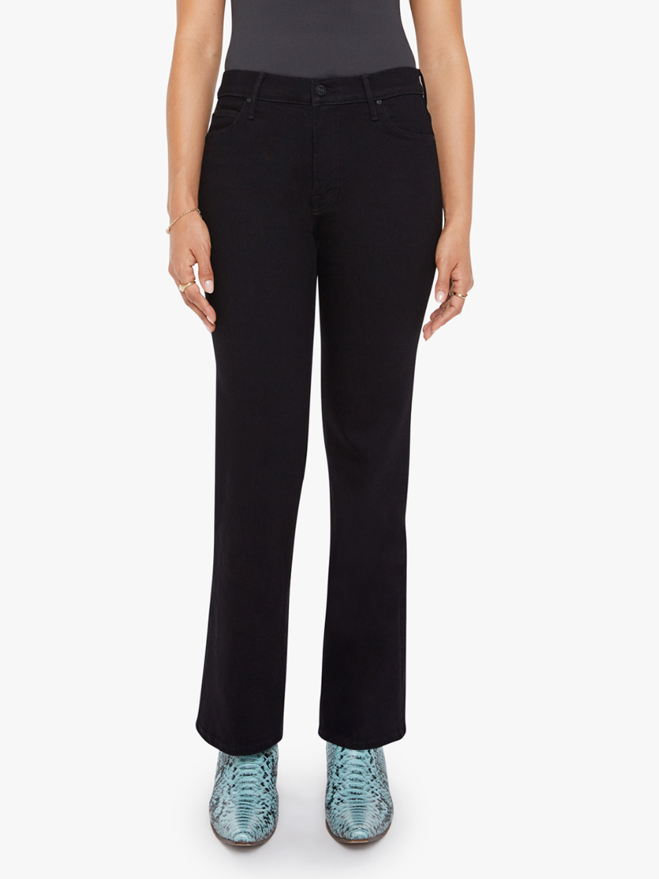 A high-rise straight leg jean with a 30-inch inseam and a clean hem. Made from stretch denim, Nighty Night is a true black with tonal hardware.