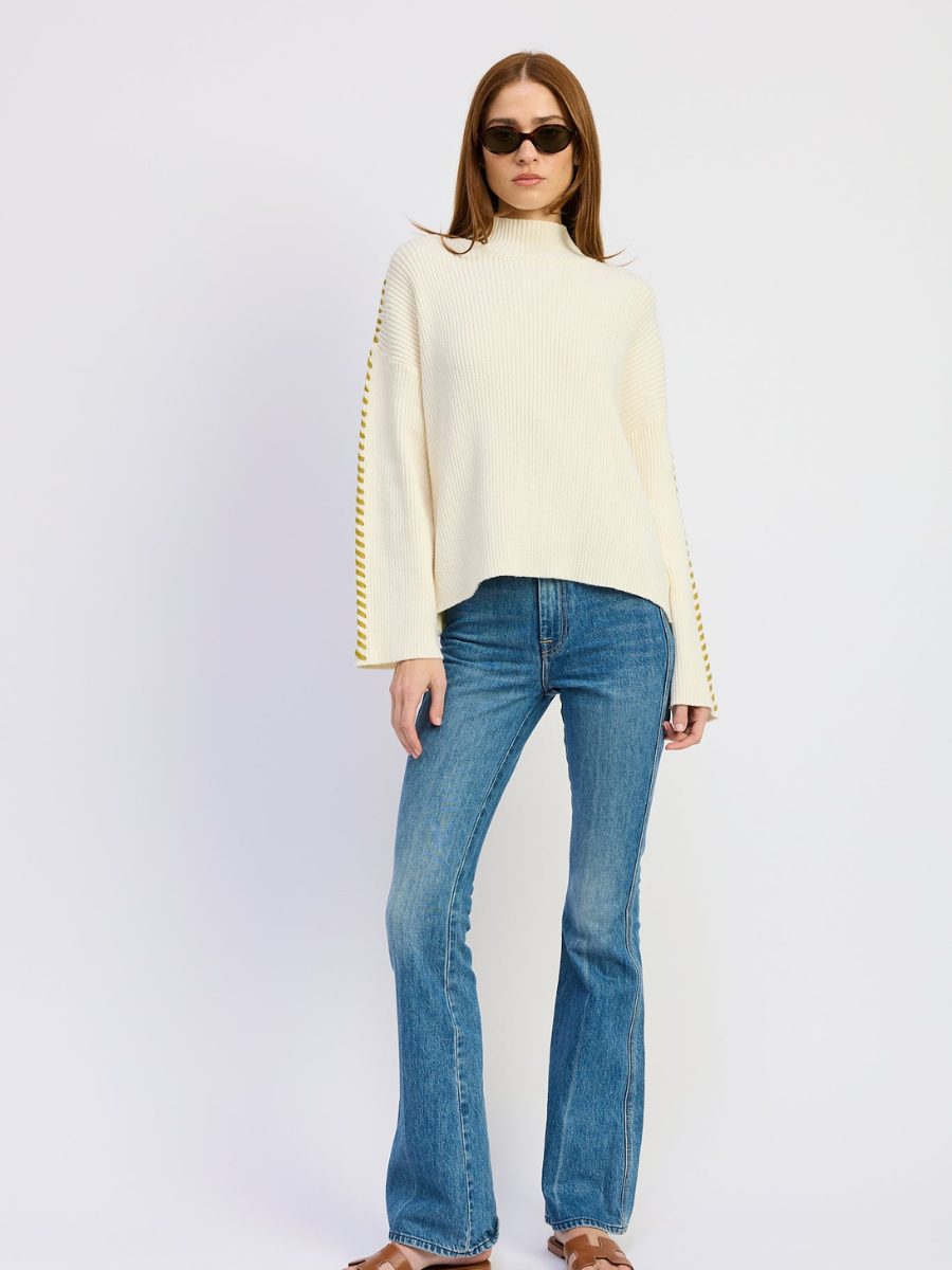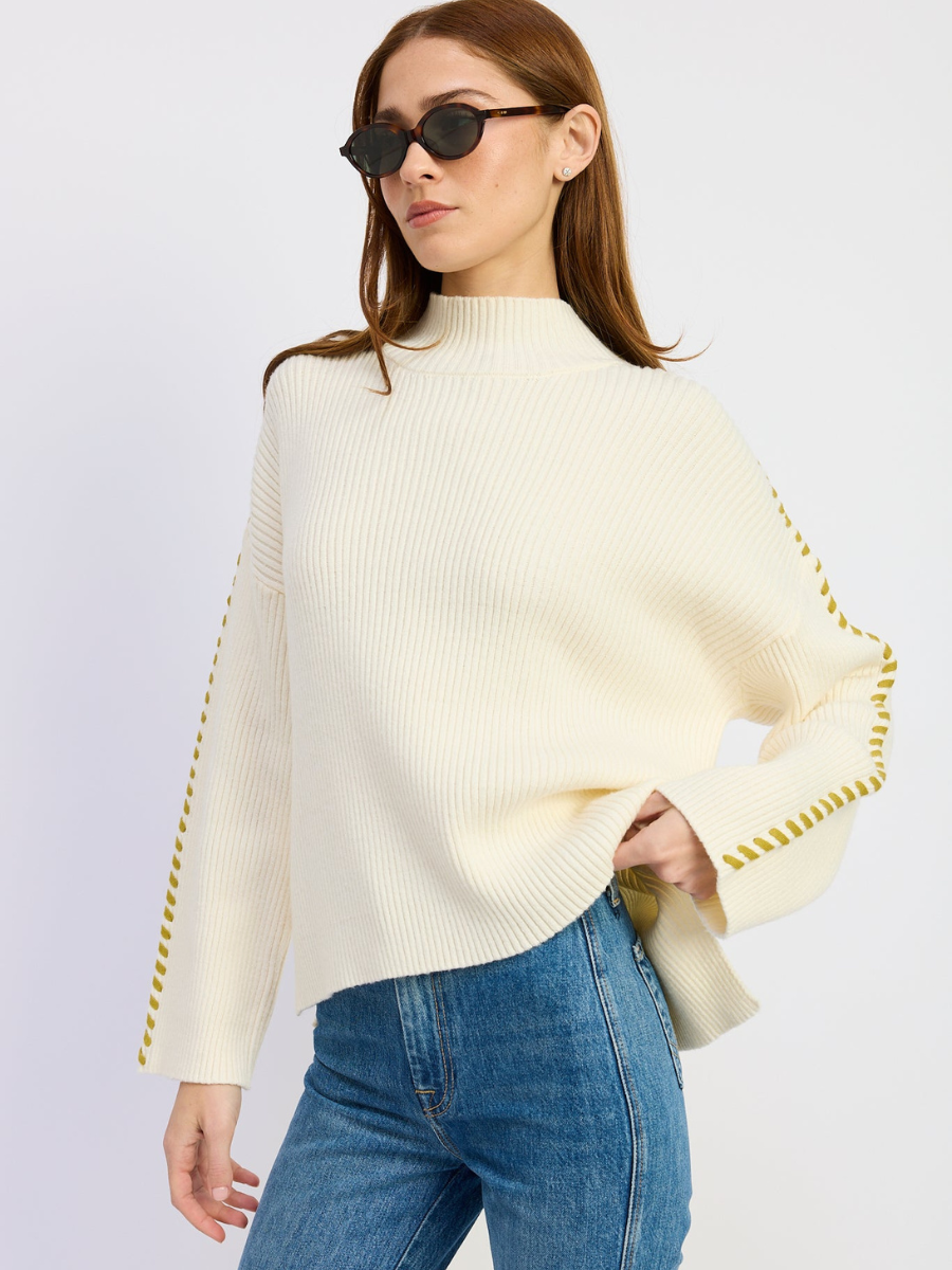 - Whip Stitch High Neck Bell Sleeve Boxy Sweater