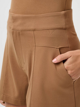 Comfort stretch denim, high rise waist, slightly distressed detail, raw hem, denim shorts