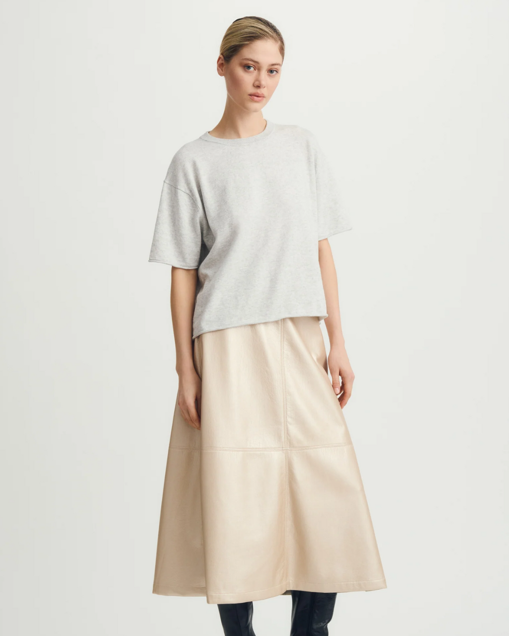 Crafted from 100% vegan leather, the Terry Skirt offers a sophisticated, flowy midi silhouette that elevates any outfit.