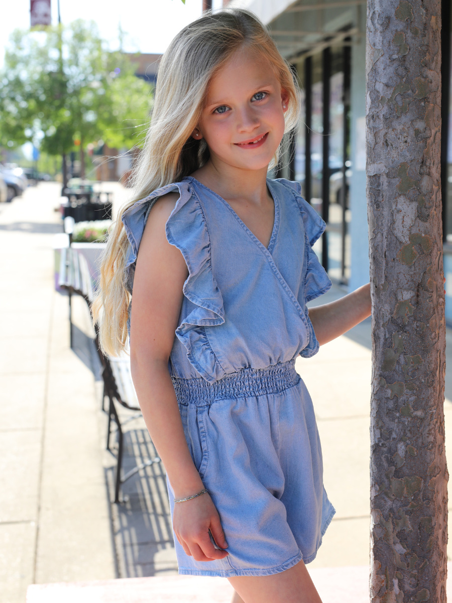 Hayden Girl's Surplice Ruffle Detail Tencel Romper Features: