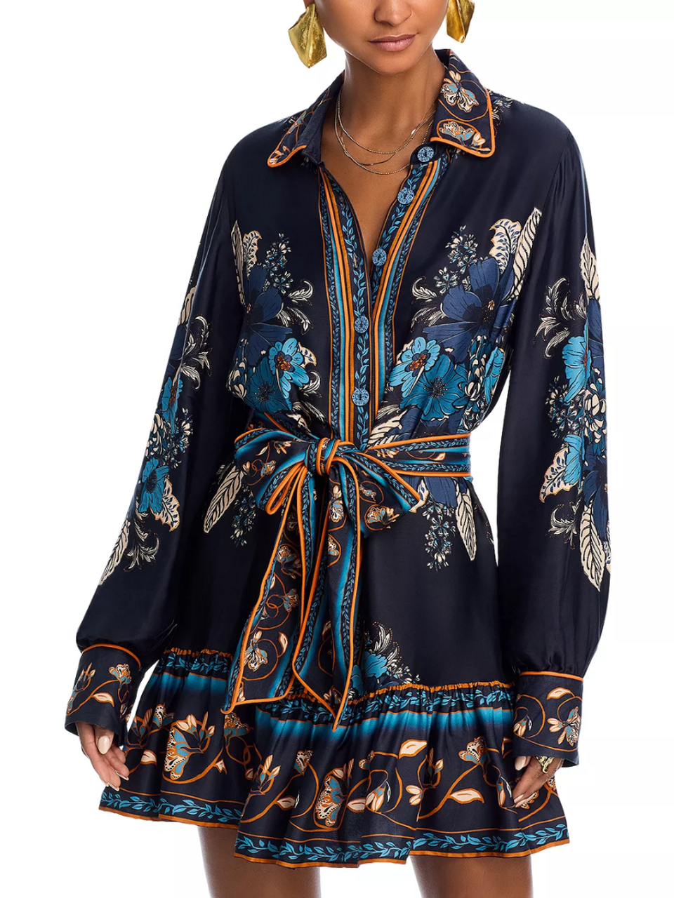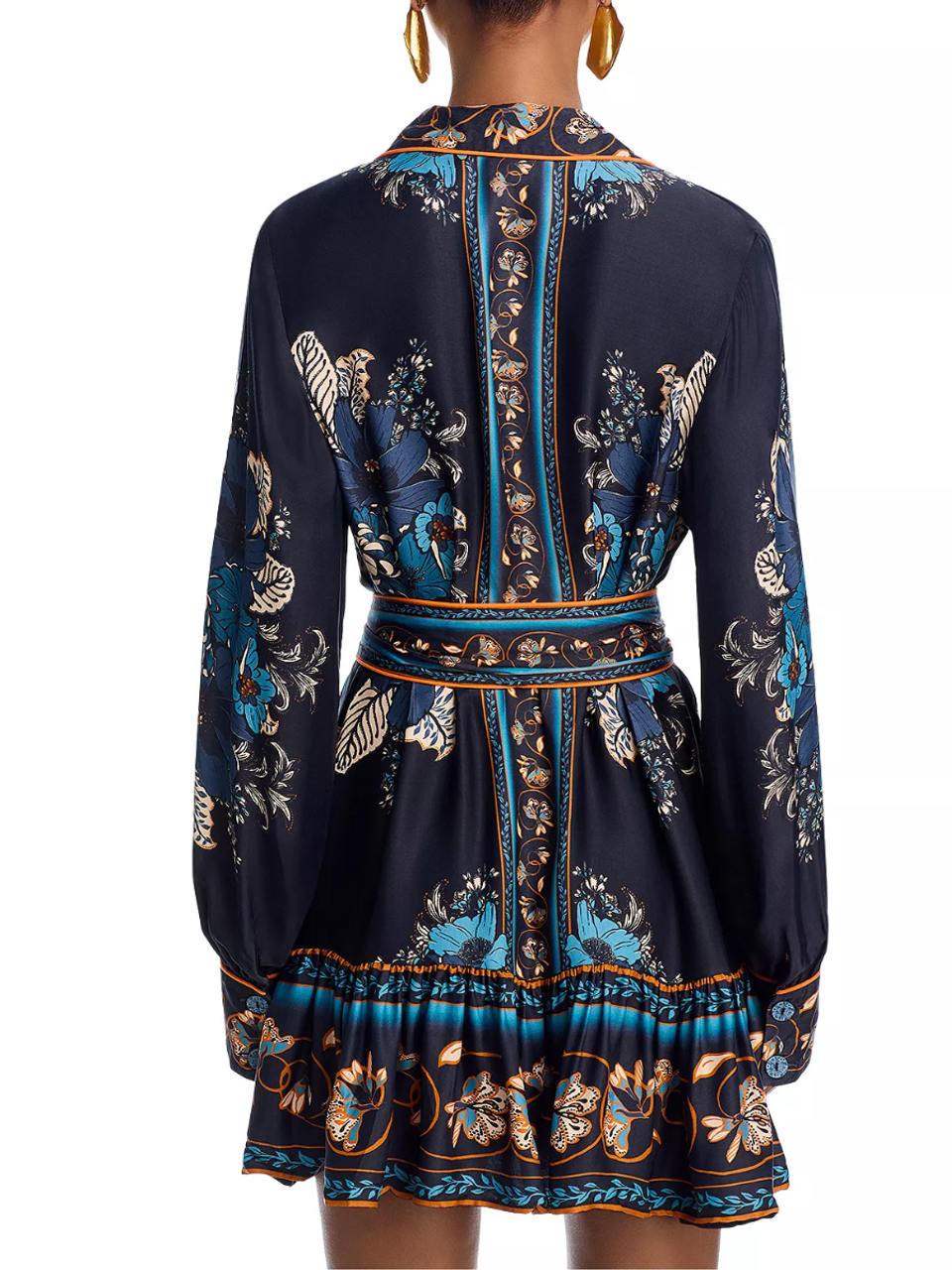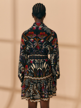 Blossom Tapestry Black Long Sleeve Mini Dress
