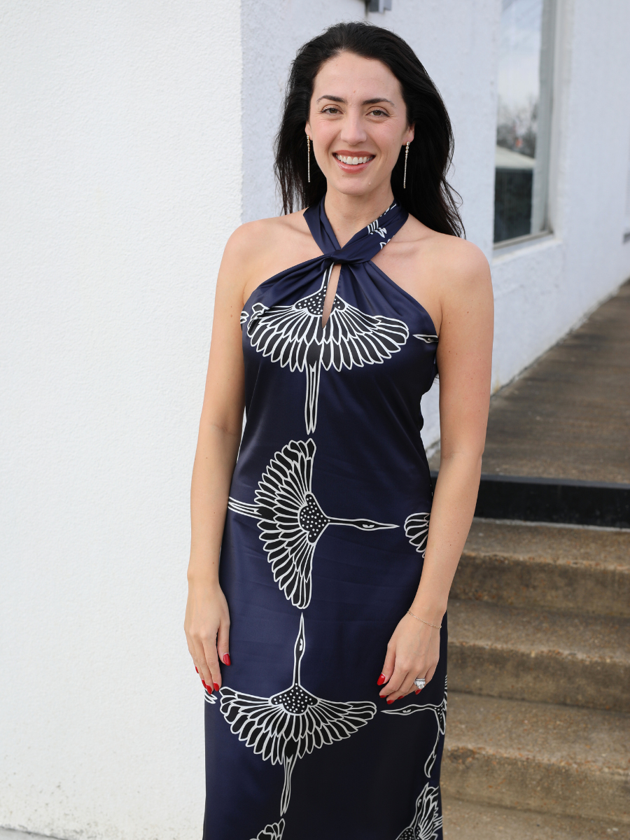 Cecelia Halter Ribbon Tie Satin Midi Dress