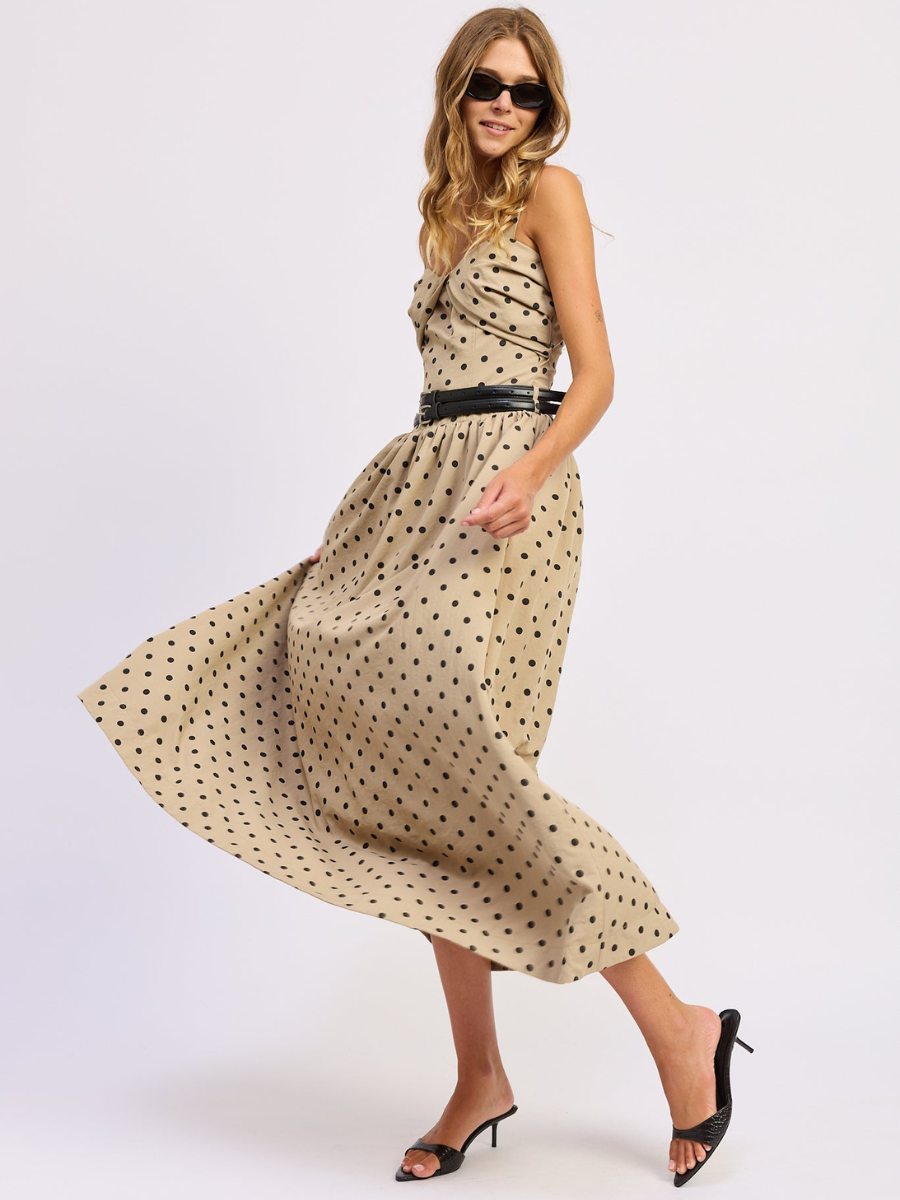 - Pleat Twist Bust Sleeveless Double Belted Midi Dress