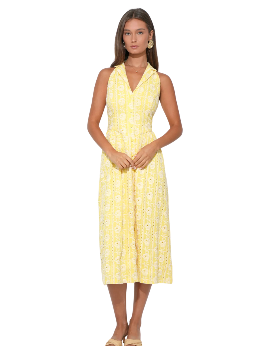 The combination of the sunny yellow hue and the artisanal embroidery makes this dress a go-to for the most photogenic moments on your social calendar: You’ll perfectly complement a floral backdrop; it’s an ideal choice for "Garden Chic" or "Summer Elegant" dress codes.