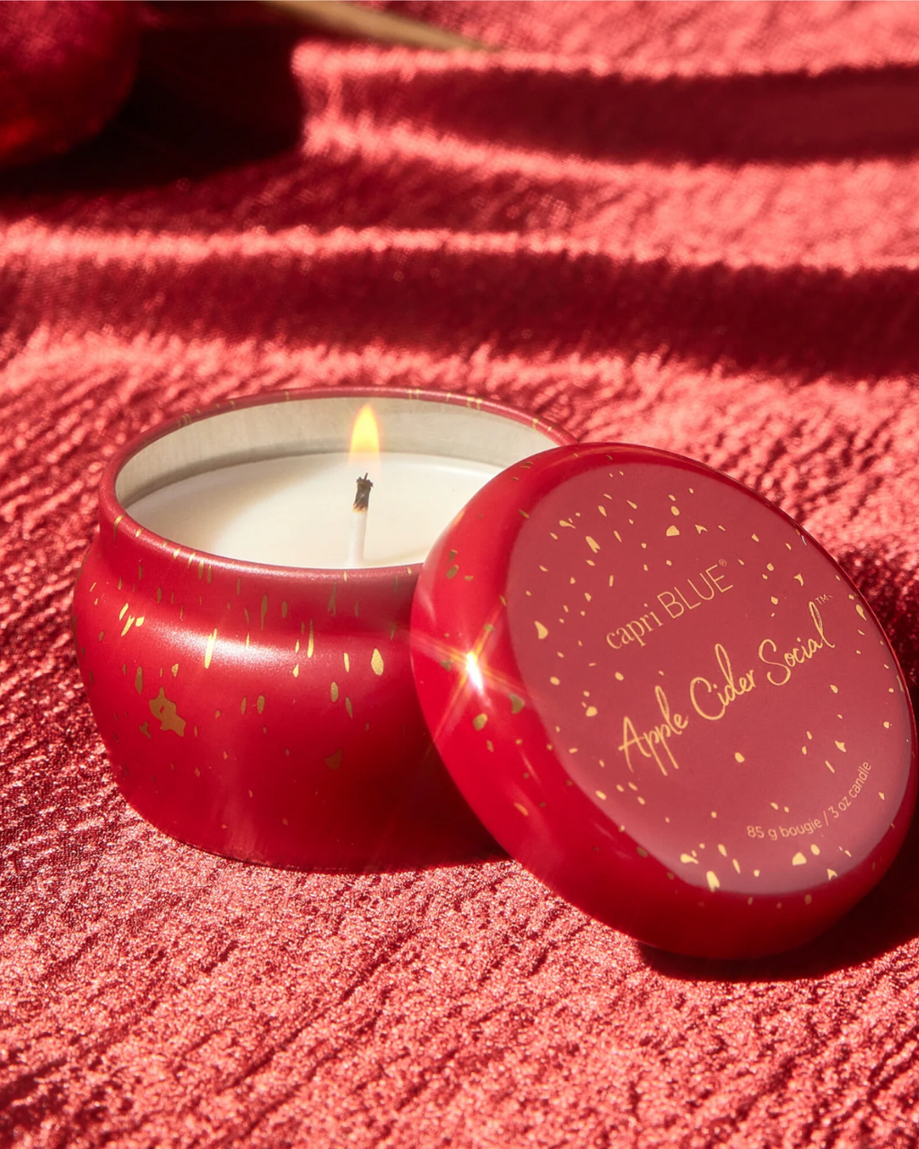 Cozy up to fall with this cutie pie! Our Apple Cider Social Glimmer Mini Tin Candle is filled with spicy notes of crisp apple, cinnamon, juicy pear with grated clove and fresh nutmeg. This is just what you need to enjoy the autumn weather!