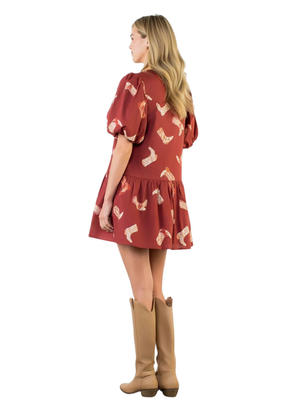 Puff sleeve printed mini dress