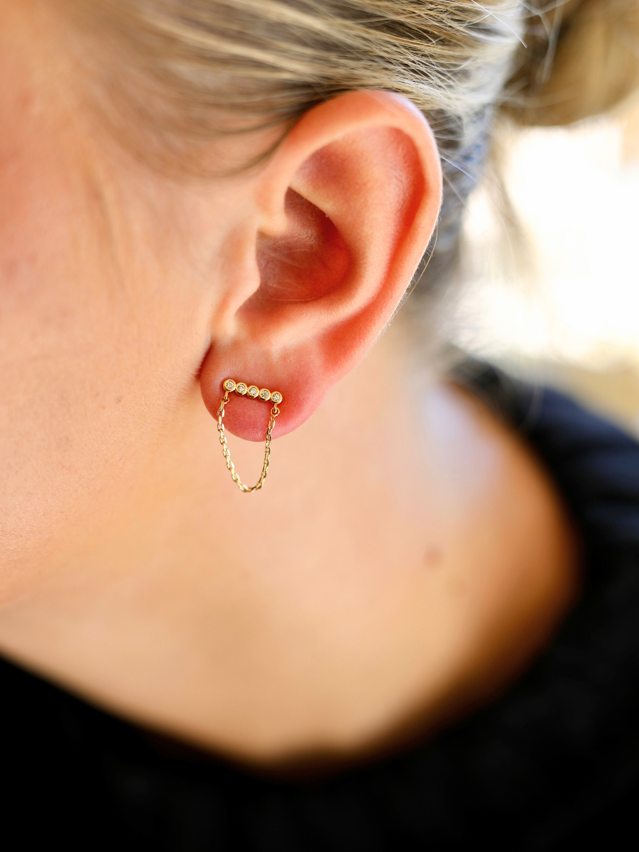 pave bar and chain drop dainty earring