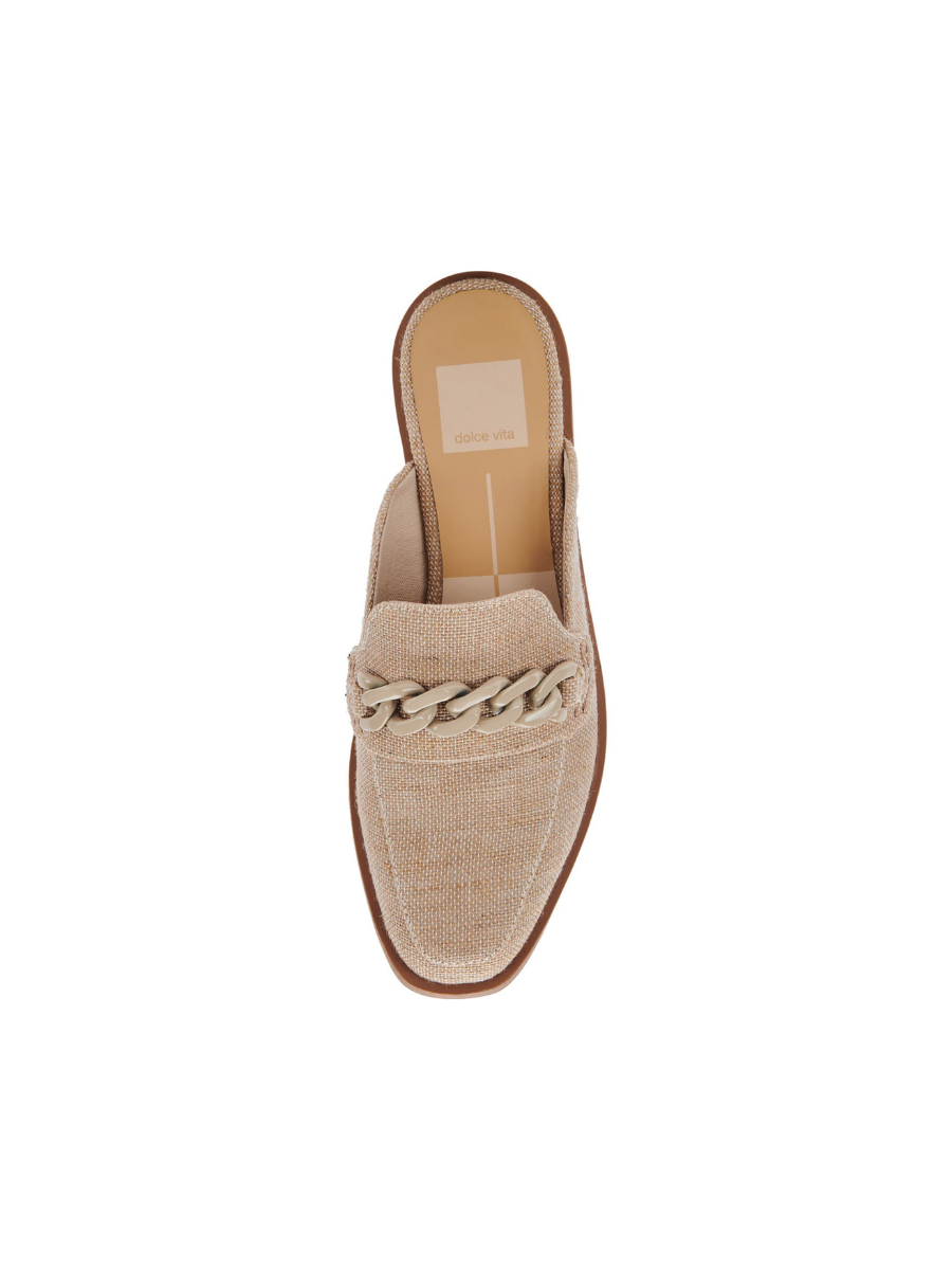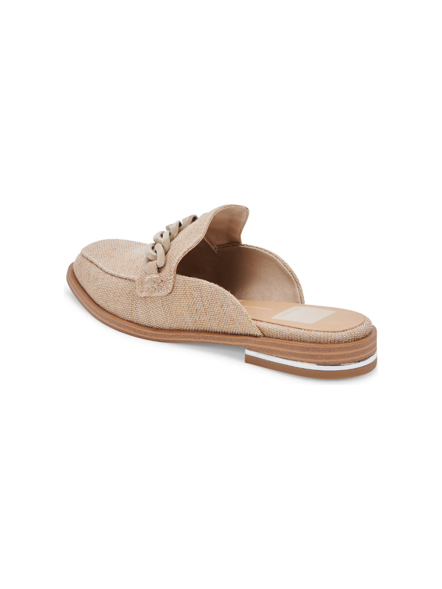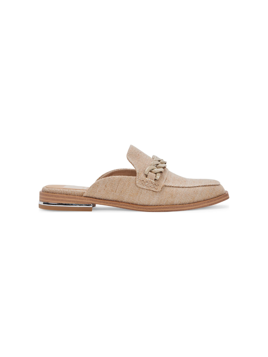 Low-effort never looked so good. PELA imparts a polished air on any outfit—the classic chain detailing and sleek silhouette is contrasted with textural raffia and canvas this season, bringing an even more easygoing feel to our favorite slip-ons.