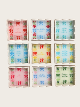 Add to Wish list Choose Options Quick view The Darling Effect Sorority Scallop Trinket Tray $29.99 Darling scalloped rim detail Dimensions: 4x4" Store bracelets, earrings and more! Glossy finish Choose Options Add to Wish list