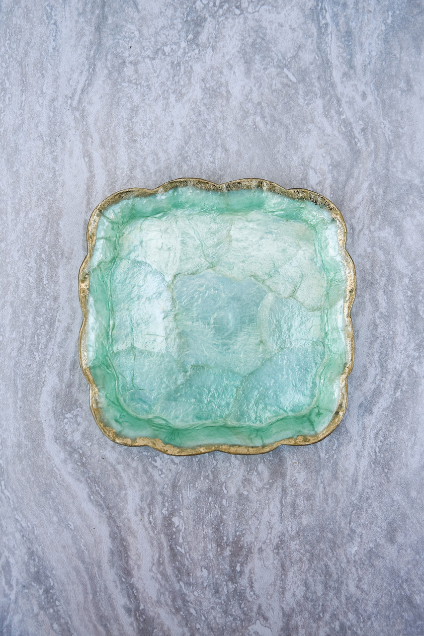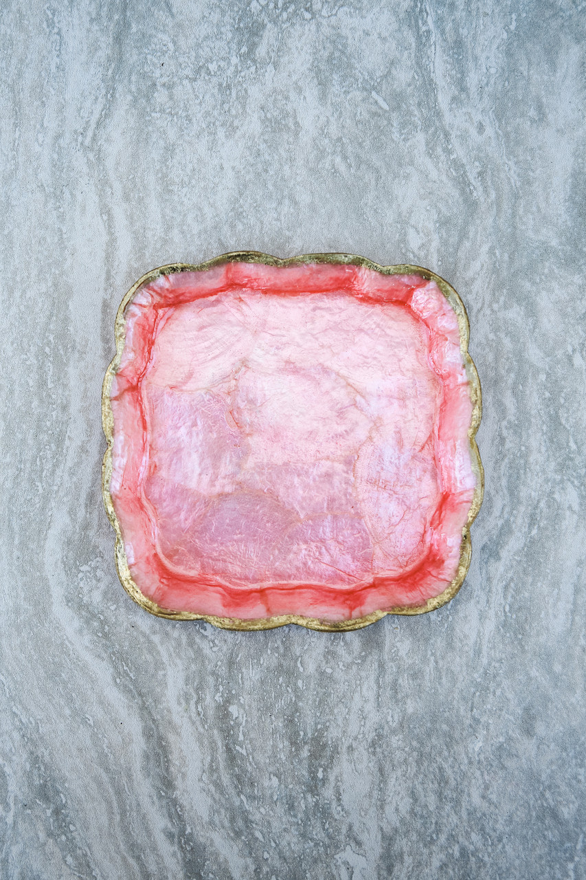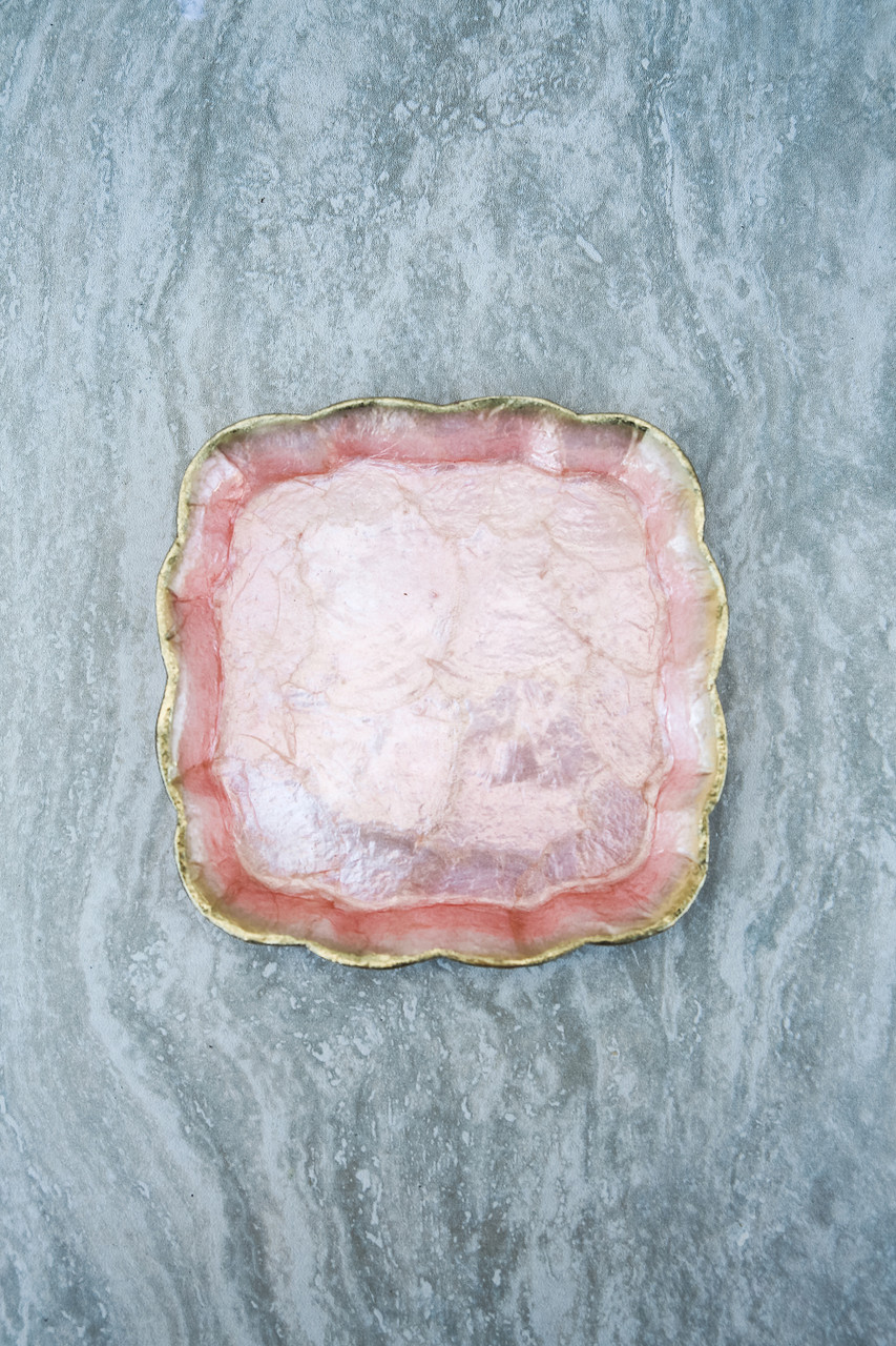 These beautiful pearlized plates feature scalloped edges and gold trim.